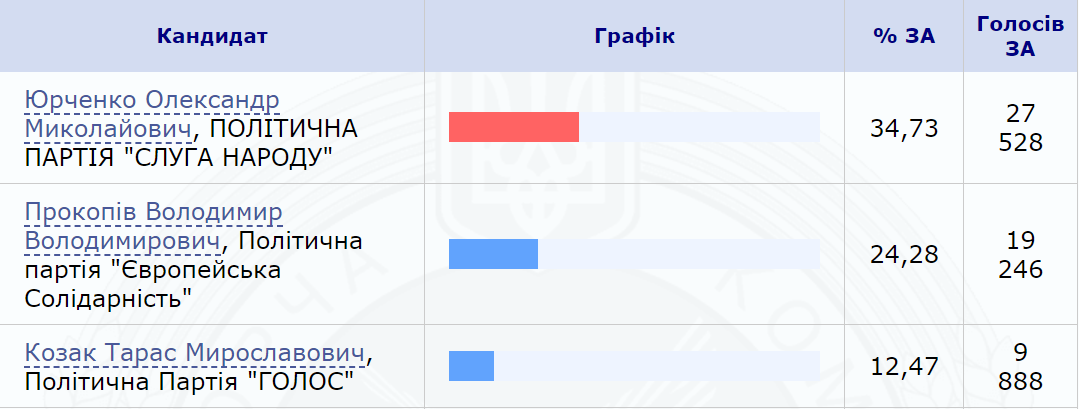 Отметим, что безработный активист Юрченко обошел выдвиженца партии "Голос" и финансиста Тараса Козака и секретаря Киевсовета Владимира Прокопива, который баллотировался от "Европейской солидарности".
