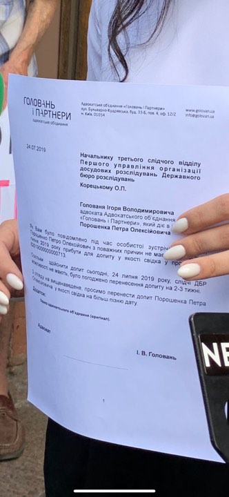 15 июля директор ГБР Роман Труба заявил, что сторонники Порошенко ворвались в здание бюро, чтобы повлиять на это дело. Он также возмутился, что в Государственном бюро расследований произошла утечка информации по делу, в котором фигурирует Порошенко.