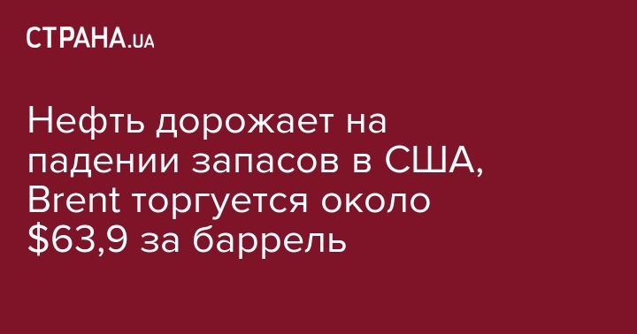 Нефть дорожает на падении запасов в США, Brent торгуется около $63,9 за баррель