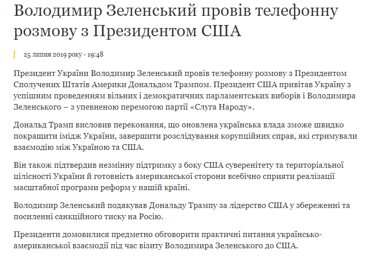 Это уже второй телефонный разговор Зеленского и Трампа. Первый состоялся сразу после выборов президента Украины и в нем президент США поздравил украинского коллегу.