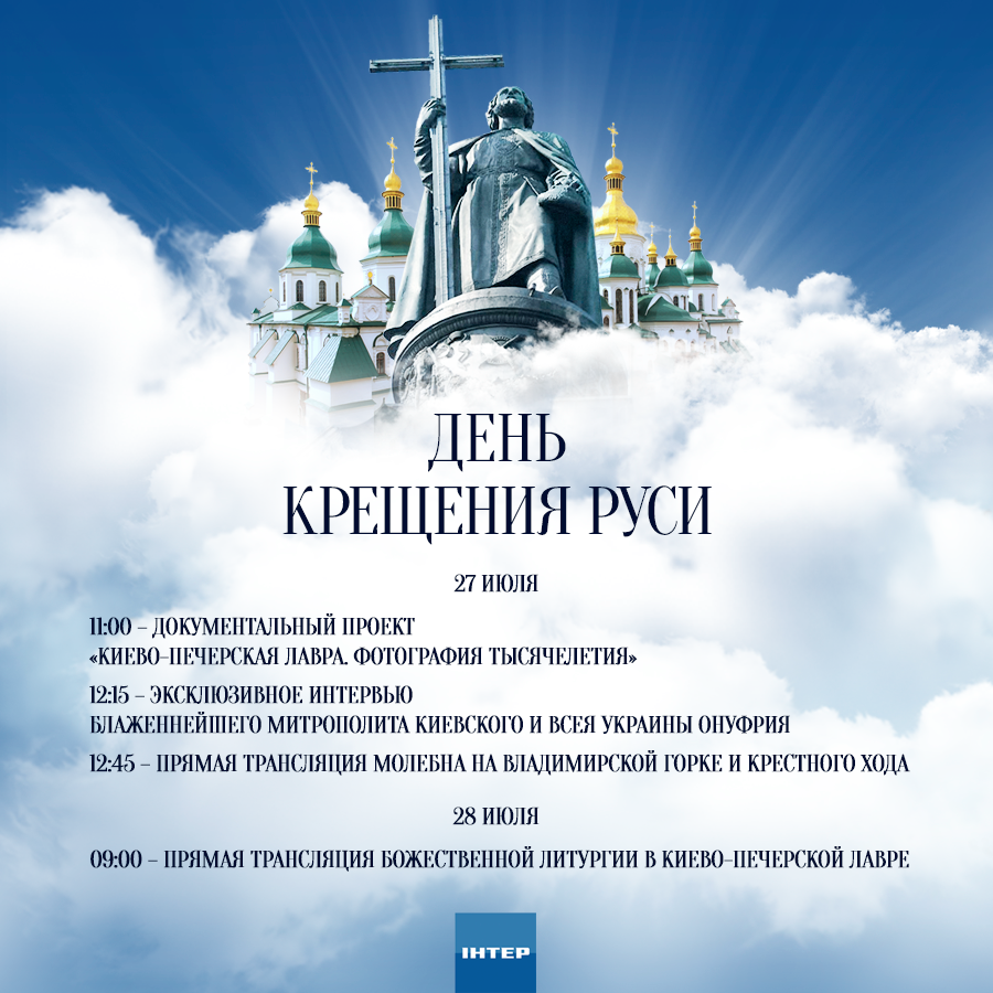 В эти выходные, 27 и 28 июля, телеканал "Интер" выпустит в эфир специальные программы, посвященные Дню Крещения Руси. Об этом сообщает пресс-служба канала.
