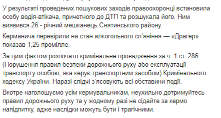 Однако в итоге правоохранители нашли 26-летнего жителя Снятинского района, который стал виновником столкновения. По результатам проверки содержание алкоголя в крови составляло 1,25 промилле.