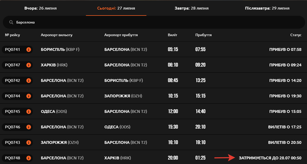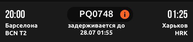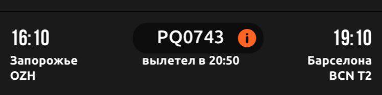 К 1.34 по Киеву стало известно, что их самолёт только прилетит в аэропорт Барселоны рейсом из Запорожья в 1.50 ночи. Причём, данный самолёт вылетел из Запорожья также с задержкой в несколько часов и должен был быть в Барселоне ещё в 19.10.