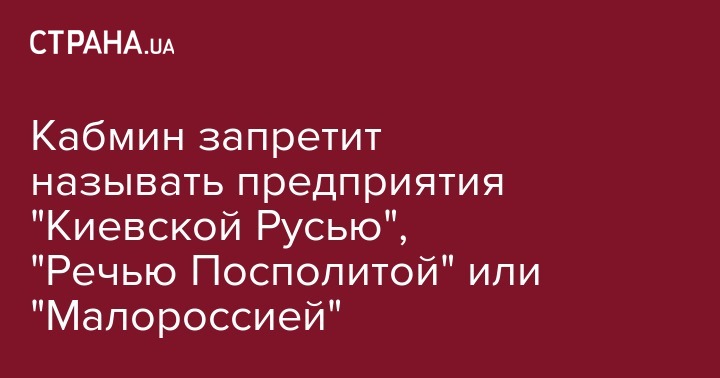 Кабинет министров запретит юридическим лицам использовать исторические названия для нейминга брендов, торговых марок или фирм. Об этом на своей странице в Facebook сообщил журналист Валерий Калныш.