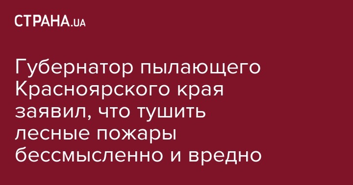 Губернатор Красноярского края Александр Усс полагает, что лесные пожары - обычное природное явление, бороться с которым бессмысленно и даже вредно. Такое заявление глава региона сделал на молодежном форуме "Бирюса-2019". Видео выступления опубликовал сайт телеканала "Дождь".