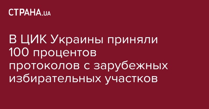 В Центральной избирательной комиссии Украины завершили принятие протоколов участковых избирательных комиссий с зарубежных избирательных участков. Об этом сообщает пресс-служба ЦИК.