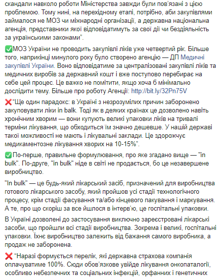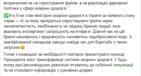 Скриншот: Facebook/Уляна Супрун
