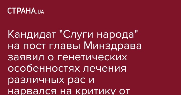 Михаил Радуцкий, основатель сети частных клиник "Борис" и кандидат от "Слуги народа" на пост министра здравохранения выступил с неоднозначным заявлением. Он считает, что существуют особенности лечения "у представителей разных рас".
