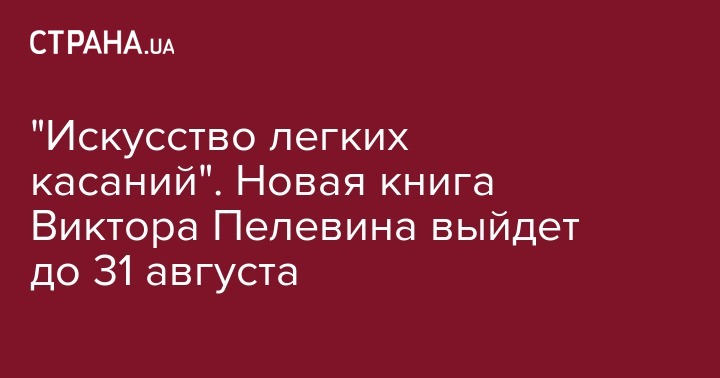 Новая книга современного российского писателя Виктора Пелевина "Искусство легких касаний" появится в продаже до 31 августа.