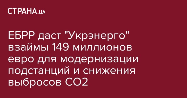 ЕБРР даст "Укрэнерго" взаймы 149 миллионов евро для модернизации подстанций и снижения выбросов CO2