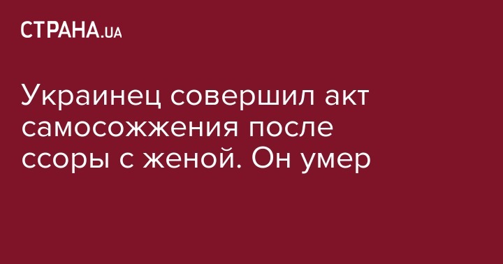Украинец совершил акт самосожжения после ссоры с женой. Он умер
