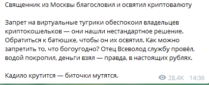 В Москве священник РПЦ благословил и освятил криптовалюту. Видео