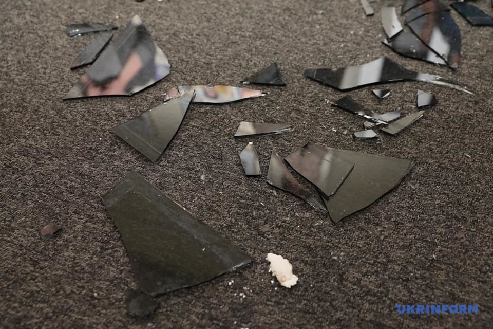 Как рассказала Сингаевская, во время нападения молодчики выбили двери в помещении, сломали стоявшую акустическую конференцсистему, вырвали 5 микрофонов, оборвали жалюзи, испачкали стены, стулья, центральный баннер. Пресс-зал не будет работать до восстановления поврежденного оборудования и проведения ремонта, уточнила заместитель гендиректора.