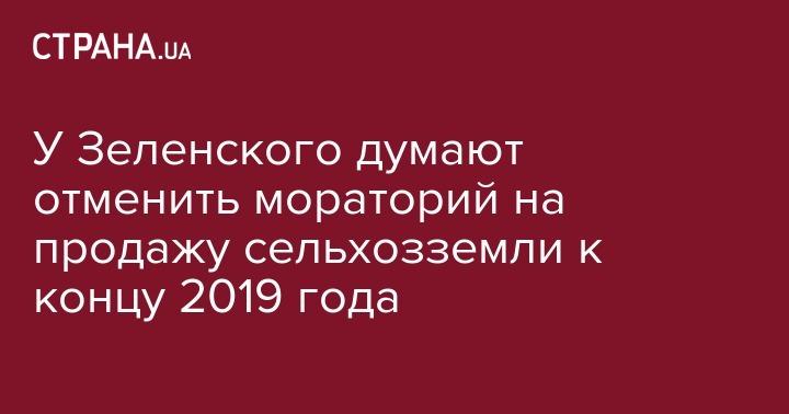 Заместитель главы Офиса президента Алексей Гончарук сообщил, что мораторий на продажу земель сельскохозяйственного назначения может быть отменен до конца 2019 года. Об этом он рассказал агентству Bloomberg.