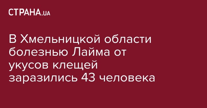 В Хмельницкой области за шесть месяцев 2019 года болезнь Лайма диагностировали у 43 жителей области, что на 19%% больше, чем в прошлом году. Об этом сообщает пресс-служба Хмельницкого областного лабораторного центра МОЗ Украины.