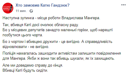 Скриншот, фото: Facebook/ Хто замовив Катю Гандзюк?