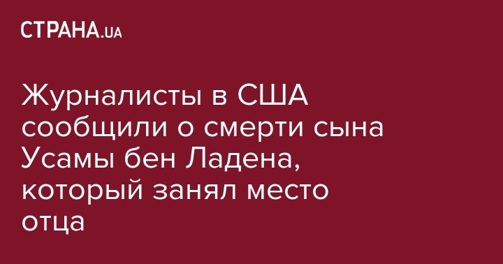 В США объявили о смерти сына и наследника главного террориста Усамы бен Ладена, Хамзы бен Ладена. Об этом сообщает американский телеканал NBC.