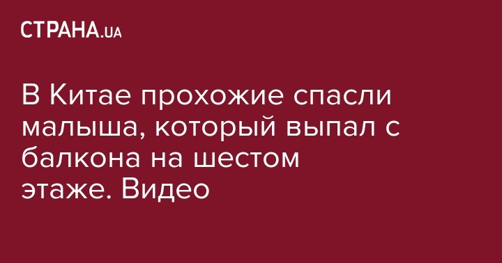 В Китае прохожие спасли малыша, который выпал с балкона на шестом этаже. Видео