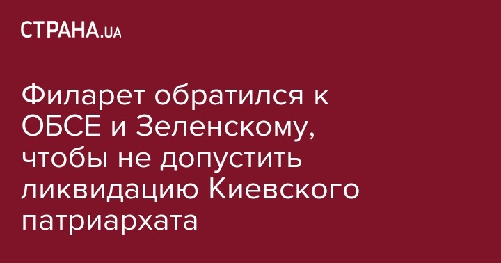 Филарет обратился к ОБСЕ и Зеленскому, чтобы не допустить ликвидацию Киевского патриархата