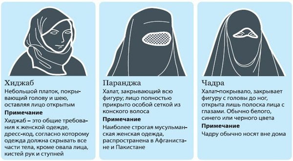 Разница между хиджабом, паранджой и чадрой/фото из открытых источников