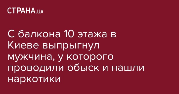 "Санкционированное судом следственное действие в квартире киевлянина проводилось в рамках расследования уголовного производства, начатого по ст. 307 (Незаконное производство, изготовление, приобретение, хранение, перевозка, пересылка или сбыт наркотических средств, психотропных веществ или их аналогов) Уголовного кодекса Украины. В квартире обнаружили вещества, похожие на кокаин и экстази. Все это отправят на экспертизу. Во время следственного действия мужчина, у которого проводили обыск, оттолкнул оперативника, выбежал на балкон - и прыгнул с 10 этажа. От полученной травмы он погиб", - говорится в сообщении.