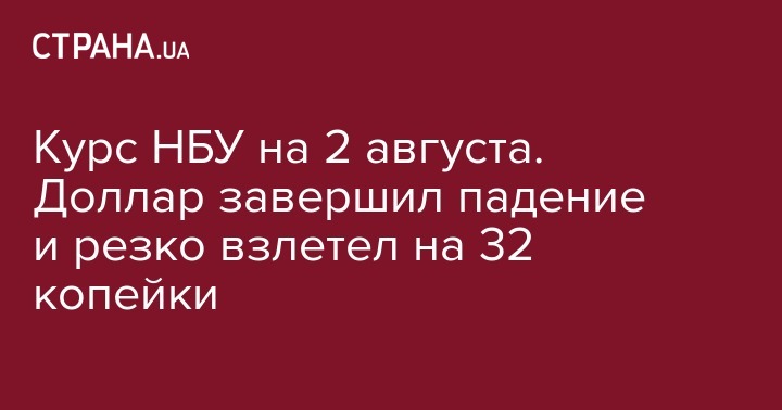 На пятницу, 2 августа, в НБУ резко подняли официальный курс доллара США. Его установили на уровне 25,34 гривны за доллар, что на 32 копейки больше чем в четверг. Курс евро подняли на 7 копеек, до 27,97 грн. Напомним, что накануне гривна ослабла на межбанке.