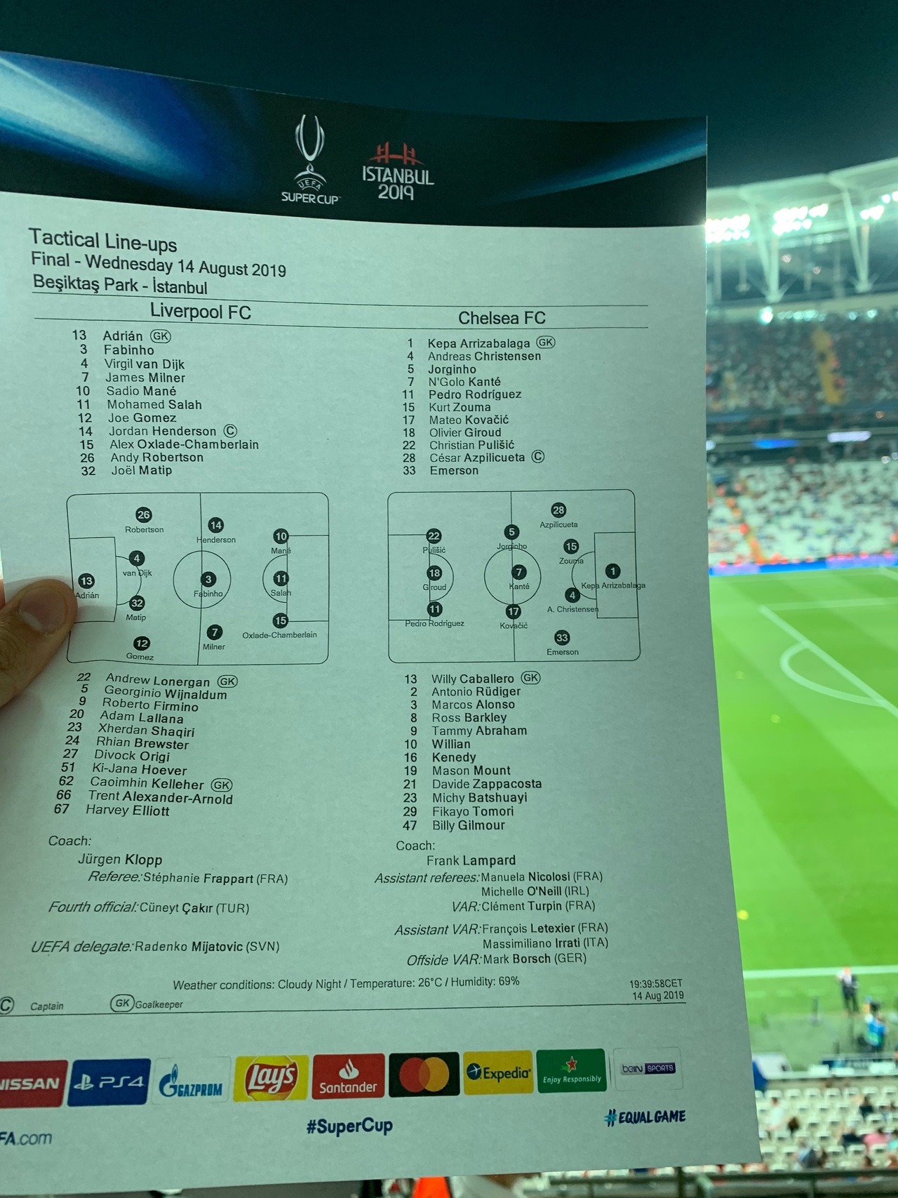 В среду, 14 августа, в Стамбуле на красивейшем стадионе "Бешикташ" состоялась игра за Суперкубок УЕФА сезона 2018\2019. Это был 44-й розыгрыш этого евротрофея. В первом английским финале в истории "Ливерпуль" Юргена Клоппа победил "Челси" Фрэнка Лампарда по пенальти. Основное время игры завершилось со счетом 2:2. Серия пенальти - 5:4 в пользу красных.