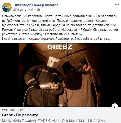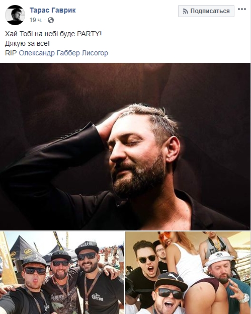 Александр Лисогор в много писал о музыке на своей странице в Facebook. Его последняя запись от 27 июля - рекомендация клипа новой музыкальной группы.