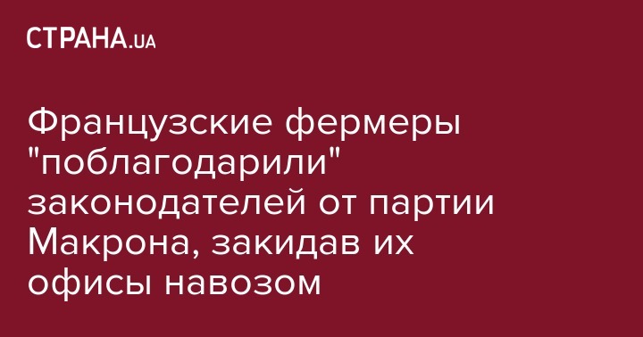 Согласно сообщению, фермеры активно протестуют на протяжении недели, придумывая различные варианты протеста, чтобы выразить несогласие с договором. Всего за неделю они "атаковали" 15 депутатов президентской партии в разных районах страны - от Бургундии до Парижа.