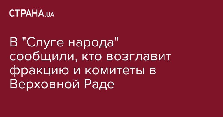 В пресс-службе "Слуги народа"сообщили, что в партии определились с претендентами на должности глав комитетов Верховной Рады, а также назвали главу фракции, - передает "Интерфакс-Украина"