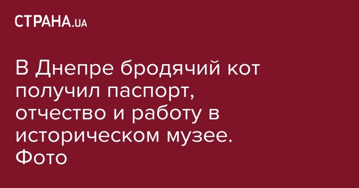 Уточняется, что теперь полосатый серый кот трудоустроен в Национальный исторический музей имени Яворницкого.