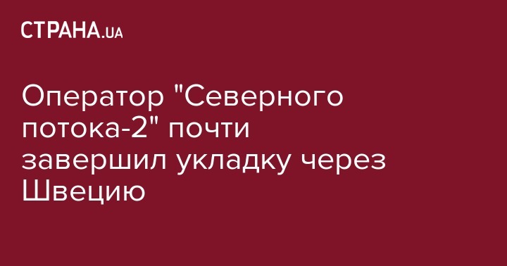 Оператор проекта строительства газопровода "Северный поток-2" - Nord Stream 2 - практически завершил укладку 510-километрового шведского участка газопровода. Об этом сообщила компания, пишет Интерфакс.