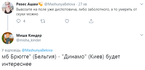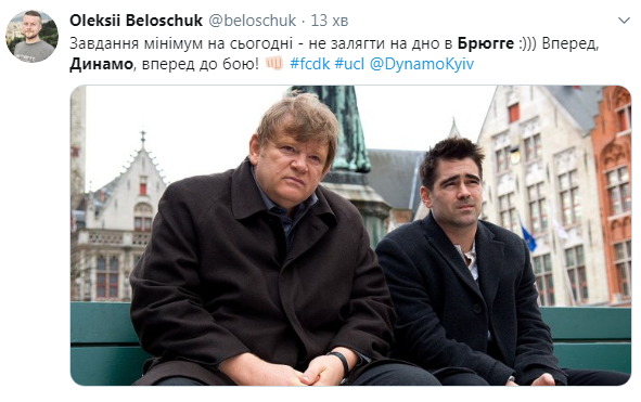 Евгений сообщил, что динамовцам всего нужно следить за полузащитником Брюгге Хансом Ванакеном, который в предыдущих сезонах был на ведущих ролях в чемпионате Бельгии. Также он сказал, что дружит с игроком Брюгге экс-"горняком" Эдуардом Соболем, даже в теннис с ним играл, но болеть все равно будет за Динамо.