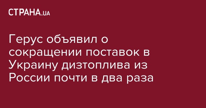 Поставки дизтоплива из России в августе сократятся почти в два раза, сообщил представитель президента в Кабинете министров Андрей Герус на брифинге в Киеве во вторник, передает "Интерфакс-Украина".