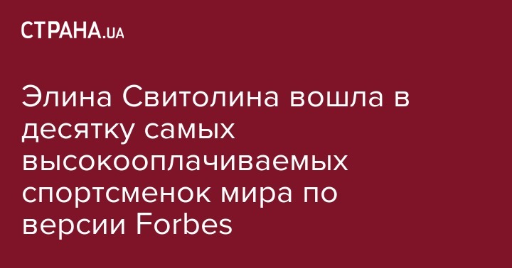 Первая ракетка Украины Элина Свитолина вошла в топ-10 самых высокооплачиваемых спортсменок мира с 1 июня 2018 года по 1 июня 2019-го. Соответствующий рейтинг опубликовал Forbes.