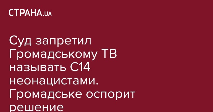 Хозяйственный суд Киева удовлетворил иск праворадикальной организации С14 против Громадського ТВ из-за публикации, в которой С14 была названа как "неонацистская" организация. Решение по делу вынесла судья Юлия Картавцева. Она отметила, что информация, распространенная каналом "вредит репутации" С14 и также обязала Громадське ТВ опровергнуть ее, опубликовав решение суда. Кроме этого журналисты должны выплатить в пользу С14 3 500 гривен судебного сбора.