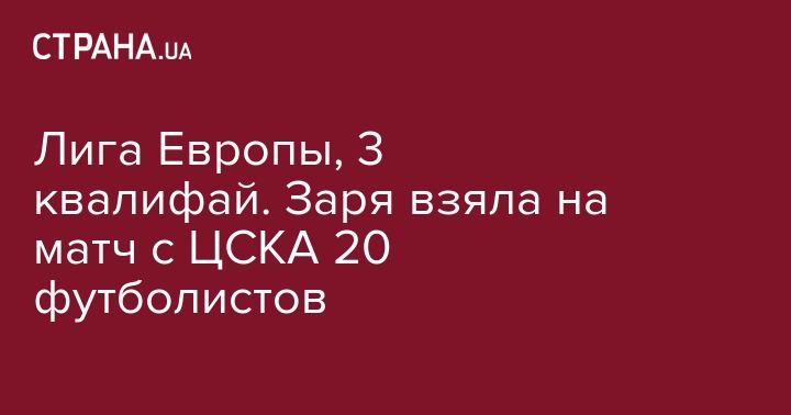 Лига Европы, 3 квалифай. Заря взяла на матч с ЦСКА 20 футболистов