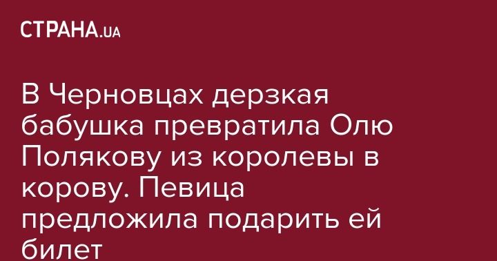 В Черновцах пожилая местная жительница закрасила маркером буквы на афише певицы Оли Поляковой, превратив название шоу артистки "Королева ночи" в "Корова ночи". Видеозапись со старушкой поп-звезда разместила в своем Instagram.