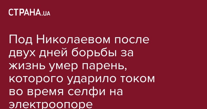 В Николаевской областной детской больнице 7 августа умер 16-летний Николай Компаниец. Его ударило током на линии электропередач в Арбузинском районе, куда он забрался ради фото. Об этом говорится в сюжете ТСН.