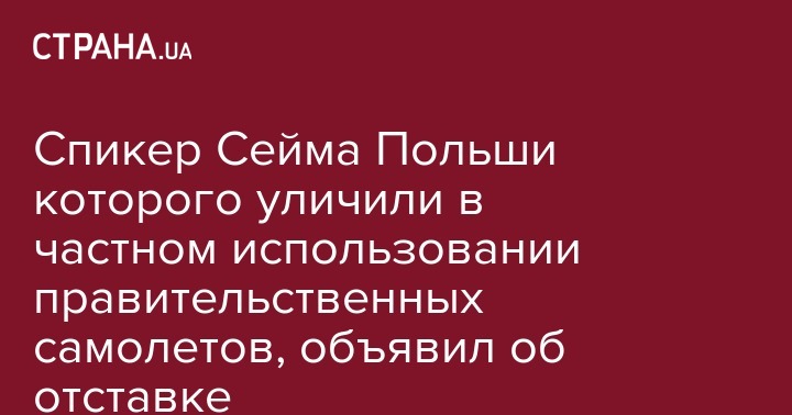 Спикер Сейма Польши которого уличили в частном использовании правительственных самолетов, объявил об отставке