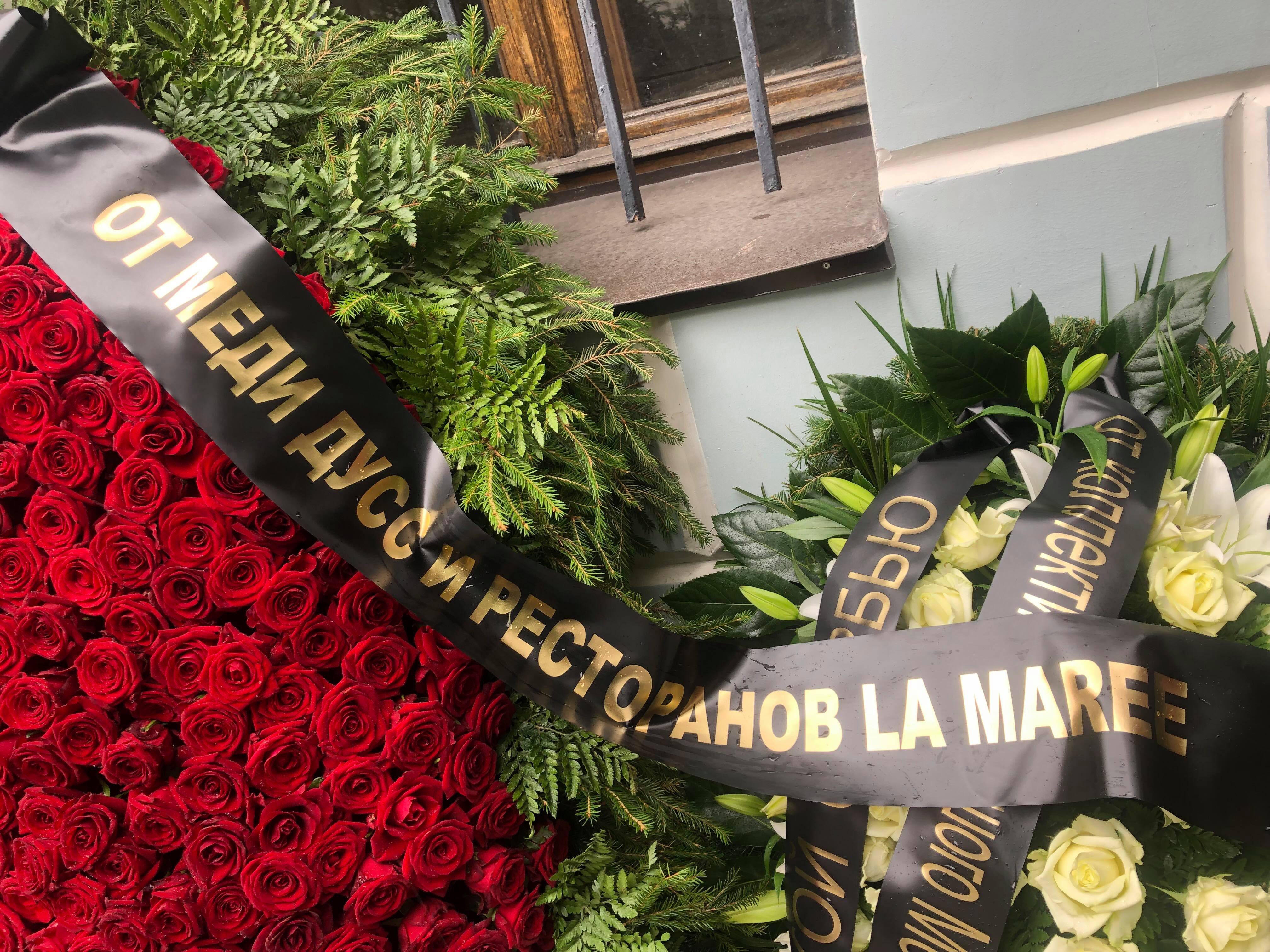 Часть венков - от ресторанов Москвы, в которых выступал певец.