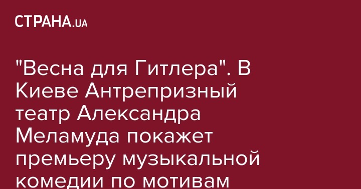 Украину 21 сентября ожидает громкая театральная премьера. Антрепризный театр Александра Меламуда впервые покажет музыкальную комедию "Весна для Гитлера".