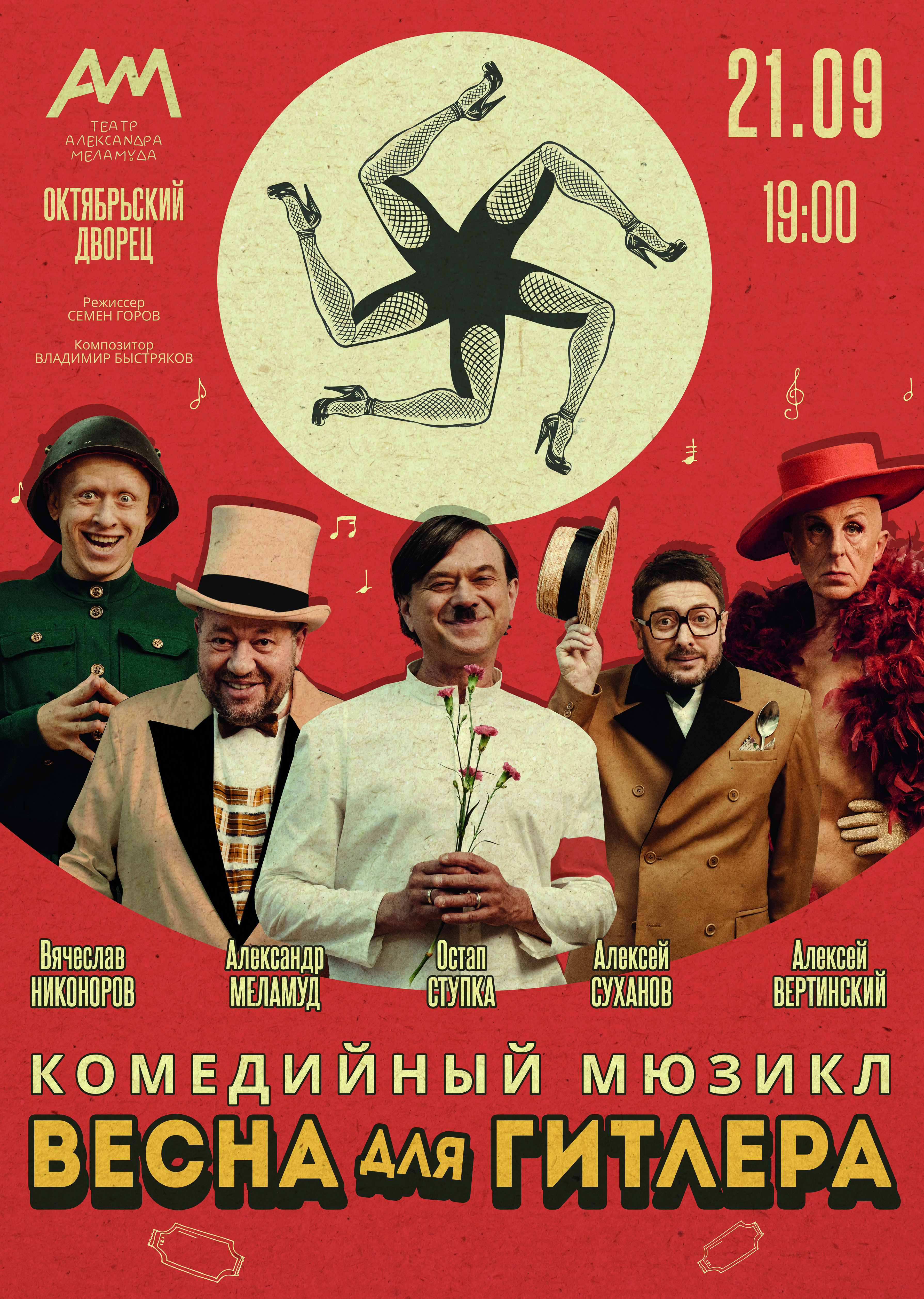 Отметим, что первоначально мюзикл "Продюсеры", по мотивам которого антрепризный театр Александра Меламуда ставит "Весну для Гитлера", был написан по одноименному фильму Мела Брукса, снятому в 1968 году. Лента включена в Национальный реестр фильмов США, имеющих "культурное, историческое или эстетическое значение". А оригинальная бродвейская постановка 2001 года получила 12 престижных премий "Тони", в том числе в номинации за лучший мюзикл.
