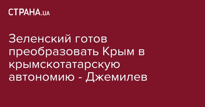Президент Украины Владимир Зеленский во время встречи с Мустафой Джемилевым заявил, что готов созвать конституционную комиссию и внести в парламент проект закона о создании крымскотатарской автономии, передает ATR. Об этом сообщил лидер крымских татар.