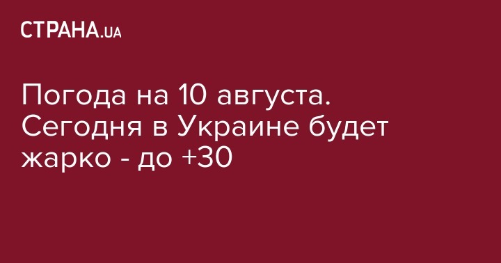 Погода на 10 августа. Сегодня в Украине будет жарко - до +30
