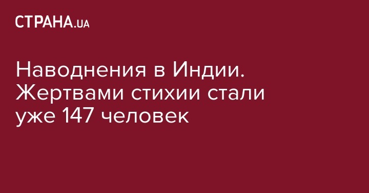 В Индии в результате наводнений, вызванных сильными дождями погибли уже 147 человек. Об этом передает РИА Новости со ссылкой на экстренные службы страны.