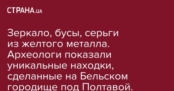 На территории Кателевского района Полтавской области археологи провели раскопки в уникальном, не разграбленном кургане на Бельском городище, где обнаружили множество ценных артефактов, таких как зеркало, бусы, серьги из желтого металла и прочее, передает Укринформ