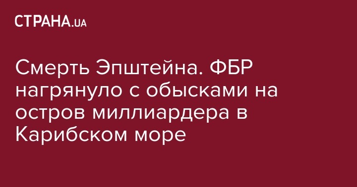 Вчера, 12 августа, детективы ФБР прибыли на остров, принадлежащий американскому миллиардеру Джеффри Эпштейну, который обвинялся в сексуальной эксплуатации несовершеннолетних и покончил с собой в тюрьме 3 августа. Цель визита следователей - проведение обысков. Об этом сообщает телеканал NBC