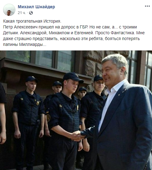 Блогер Михаил Шнайдер саркастично пишет о том, зачем дети Порошенко пришли на допрос: