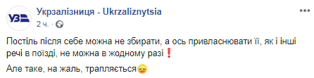 Пассажиры поездов "Укрзализныци" не обязаны собирать постель после использования, даже если этого требует проводник. Об этом в Facebook сообщает пресс-служба компании.